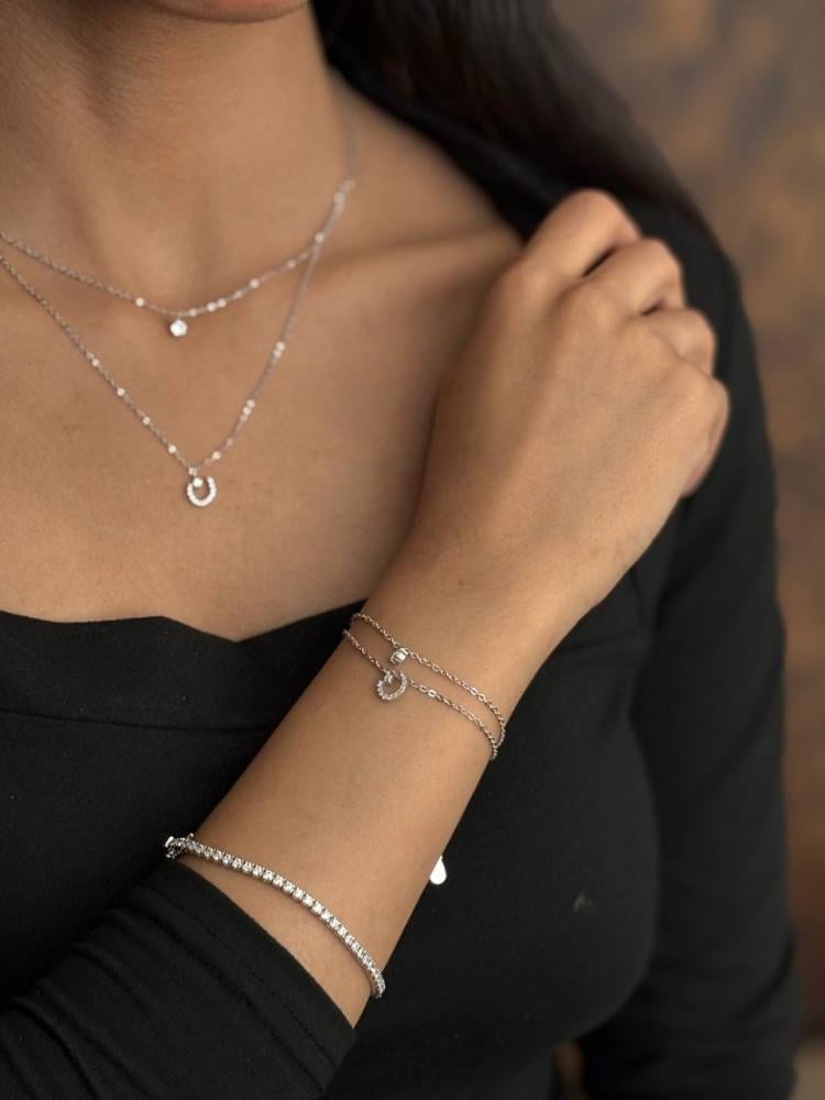 سلسال دورين هو خيارك المثالي للحصول على إطلالة أنيقة وراقية، حيث يتميز بتصميم فريد وحرف عربي جميل. مرصع بحجر الزركون اللامع الذي يضفي لمسة من البريق، ويجعل من السلسال قطعة لا غنى عنها في كل مناسبة.